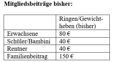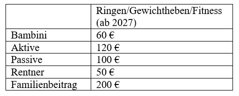 In der Jahreshauptversammlung am 14.Apr.2026 wurde eine Neufassung der Mitgliedsbeiträge ab dem 01.01.2027 beschlossen