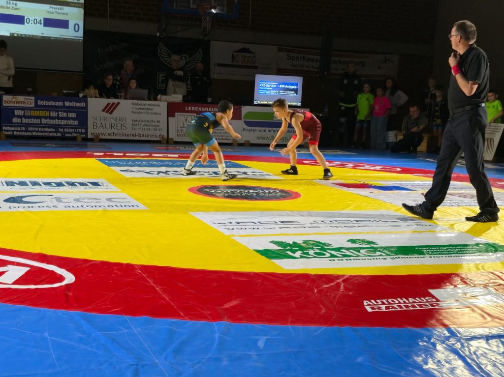 Bis 34 kg musste Paul Maksimow die Überlegenheit seines Gegners anerkennen und verlor auf Schulter. 8:16 Auch Kiril Zaec (bis 38 kg) sowie Ilyas Kuru (bis 42 kg) unterlagen nach beherztem Beginn auf Schulter. 8:24 In der Gewichtsklasse bis 48 kg verlor Ryan Wiegend technisch überhöht. 8:28