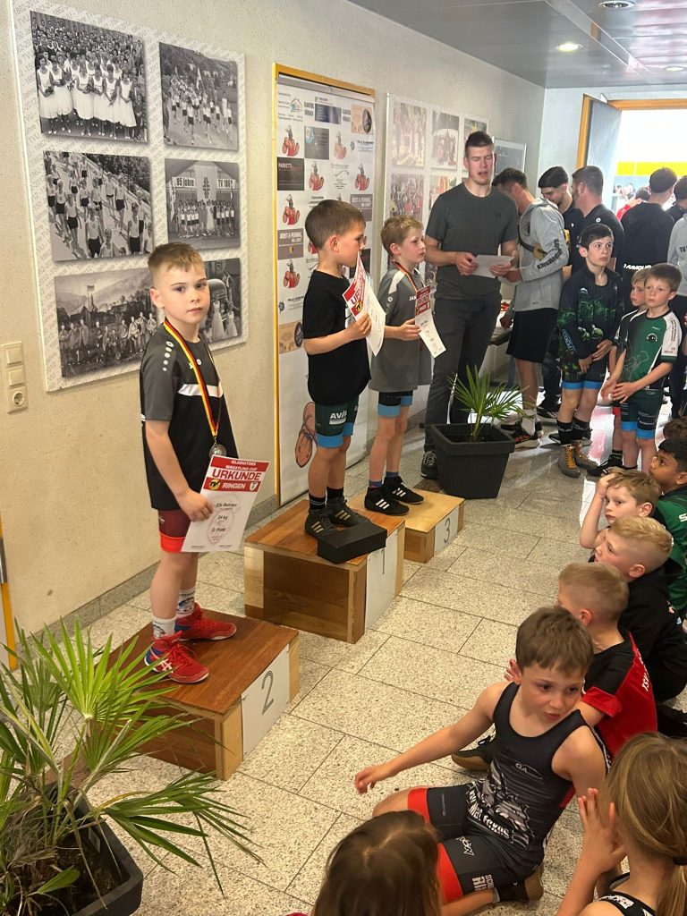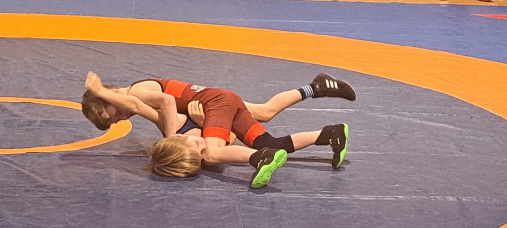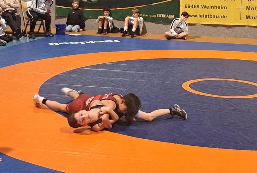 Leider kämpfte Nils Gerber nicht mit Gegnern, sondern mit Unwohlsein und konnte so leider kein Match bestreiten, was besonders schade ist, da nur die Ringer der E- bis C-Jugend hier teilnehmen kann und Nils nächstes Jahr somit zu alt ist. Das trifft auch auf Maurice Tandler zu, er überzeugte in diesem Turnier mit 4 Siegen und belegte verdientermaßen den 1. Platz!