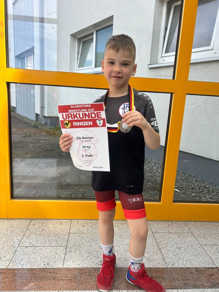 Auch Efe Behram (bis 24 kg) zeigte ein beeindruckendes Turnier. Dominant zog er ins Finale ein, ließ seinen Gegnern kaum Chancen, musste sich dort jedoch ebenfalls nach einer kurzen Unaufmerksamkeit auf Schultern geschlagen geben und wurde Zweiter.